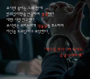 “내가 한 게 아니야.” 루시엔이 다시 감정이 치미는 목소리로 말했다. “저들이 내가 했다고 하는 거 말이야. 넌 날 믿어야 해, 로버트. 나는 괴물이 아니야. 그런 짓을 하지 않았어.”
